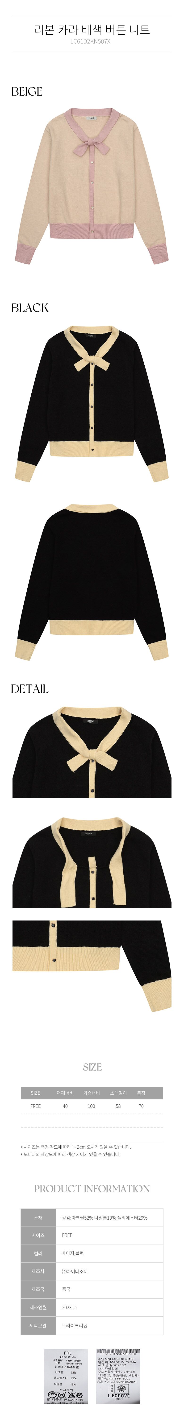 (레코브) 리본 카라 배색 니트(LC61D2KN507X)