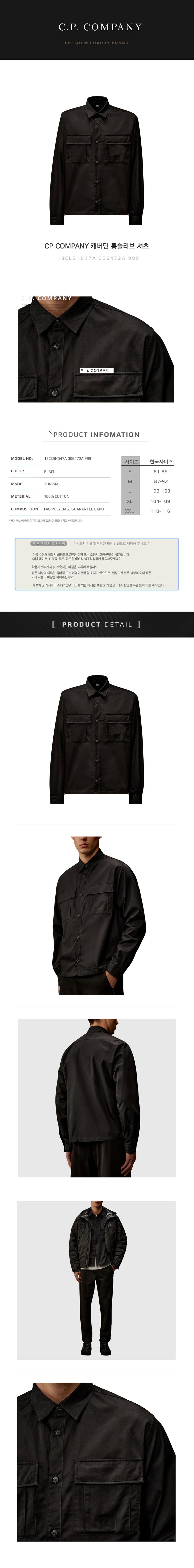 CP컴퍼니 캐버딘 롱슬리브 셔츠 19CLSH047A 006472A 999
