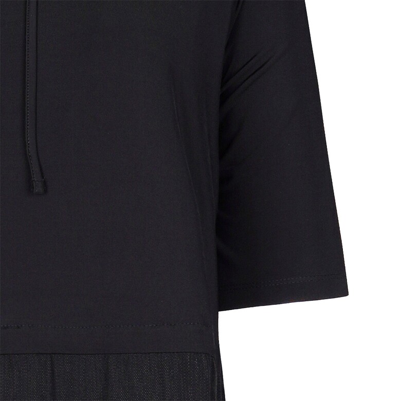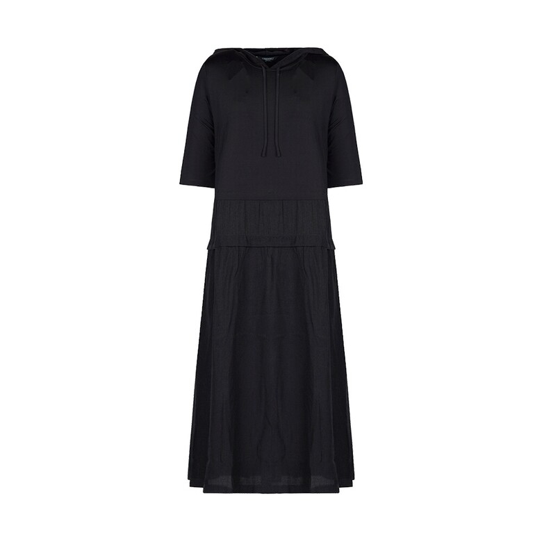 인견 후드 원피스. 상의 져지에 스커트에 우븐으로 믹스된 데일리 캐쥬얼 스타일