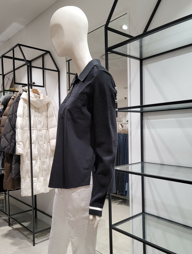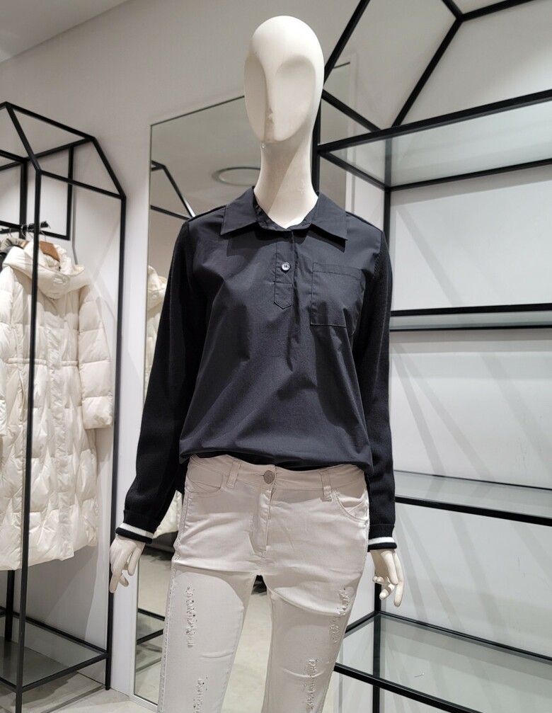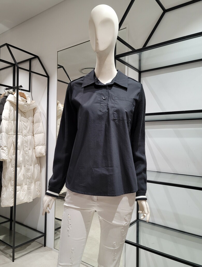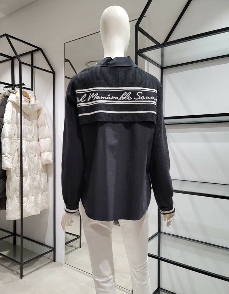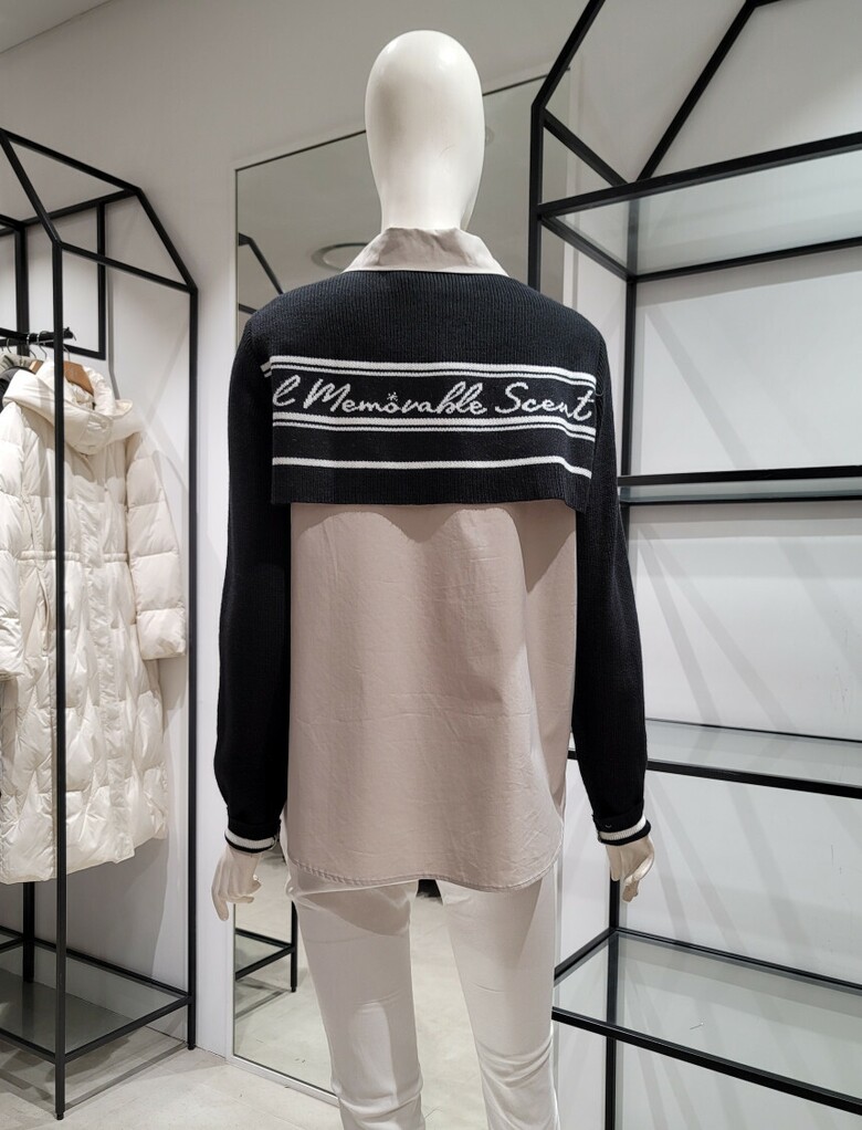 SI니트배색 레터링 포인트 블라우스SJBAI2403
