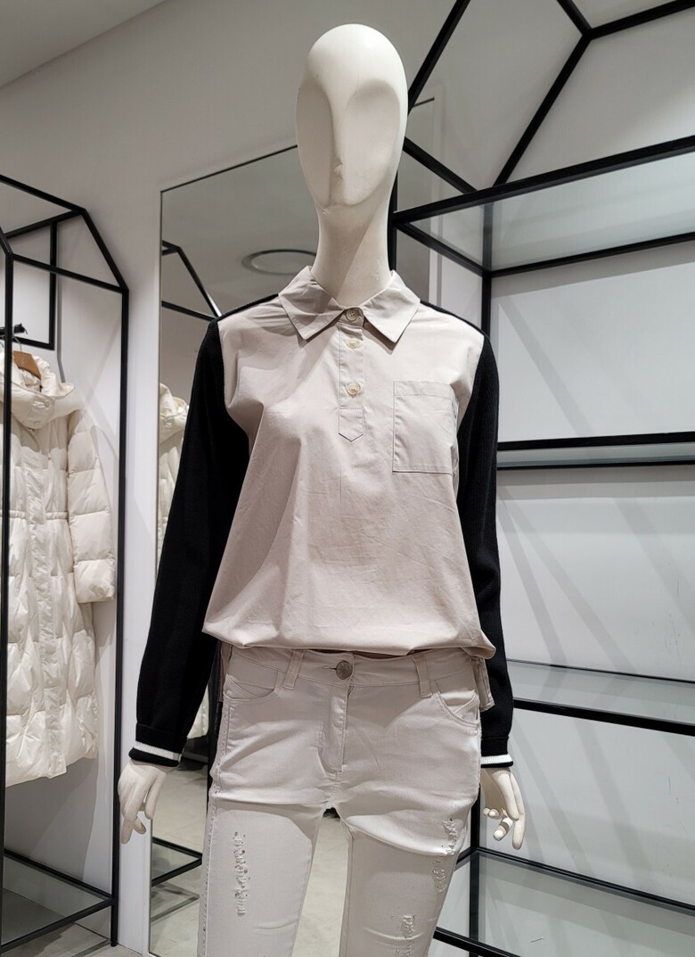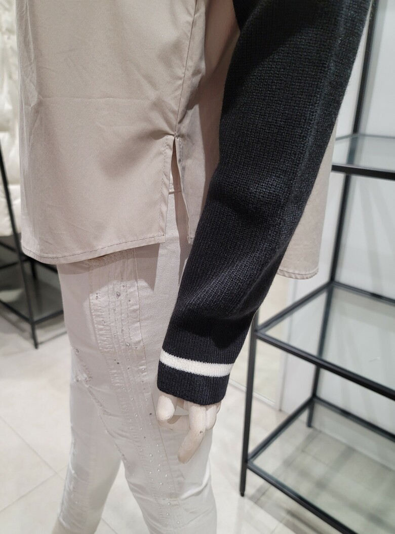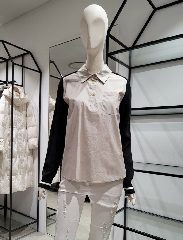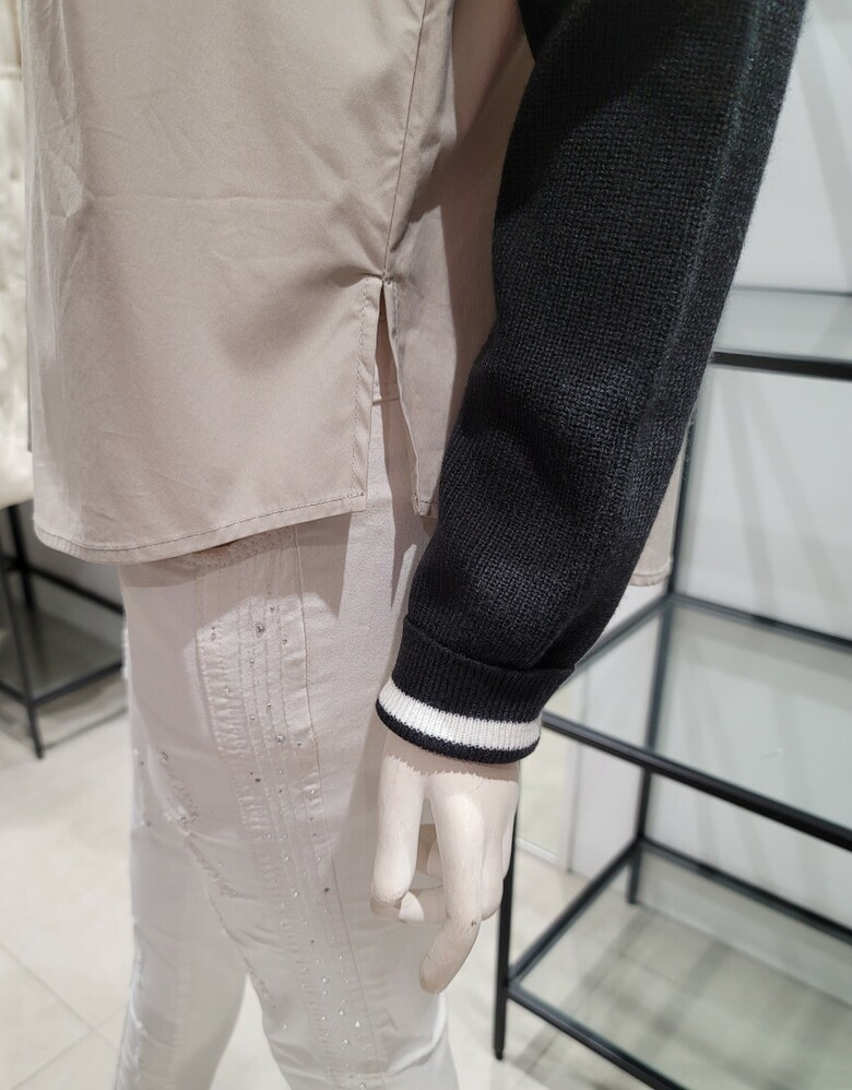 SI니트배색 레터링 포인트 블라우스SJBAI2403