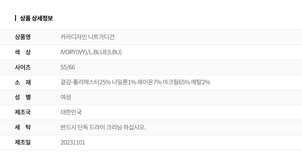 | 2. 색상 | 색상:IVORY(IVY)/L.BLUE(LBU) |