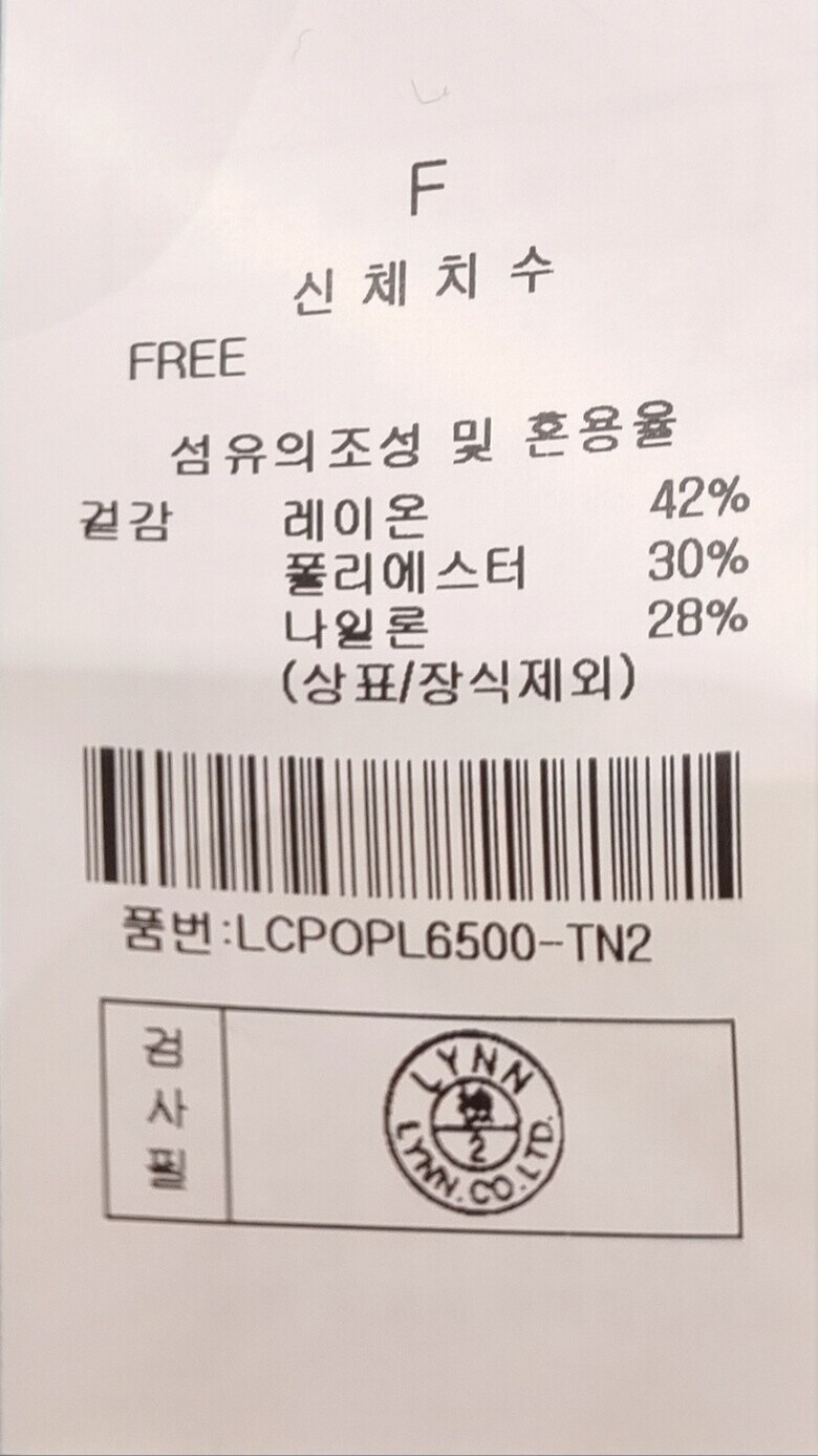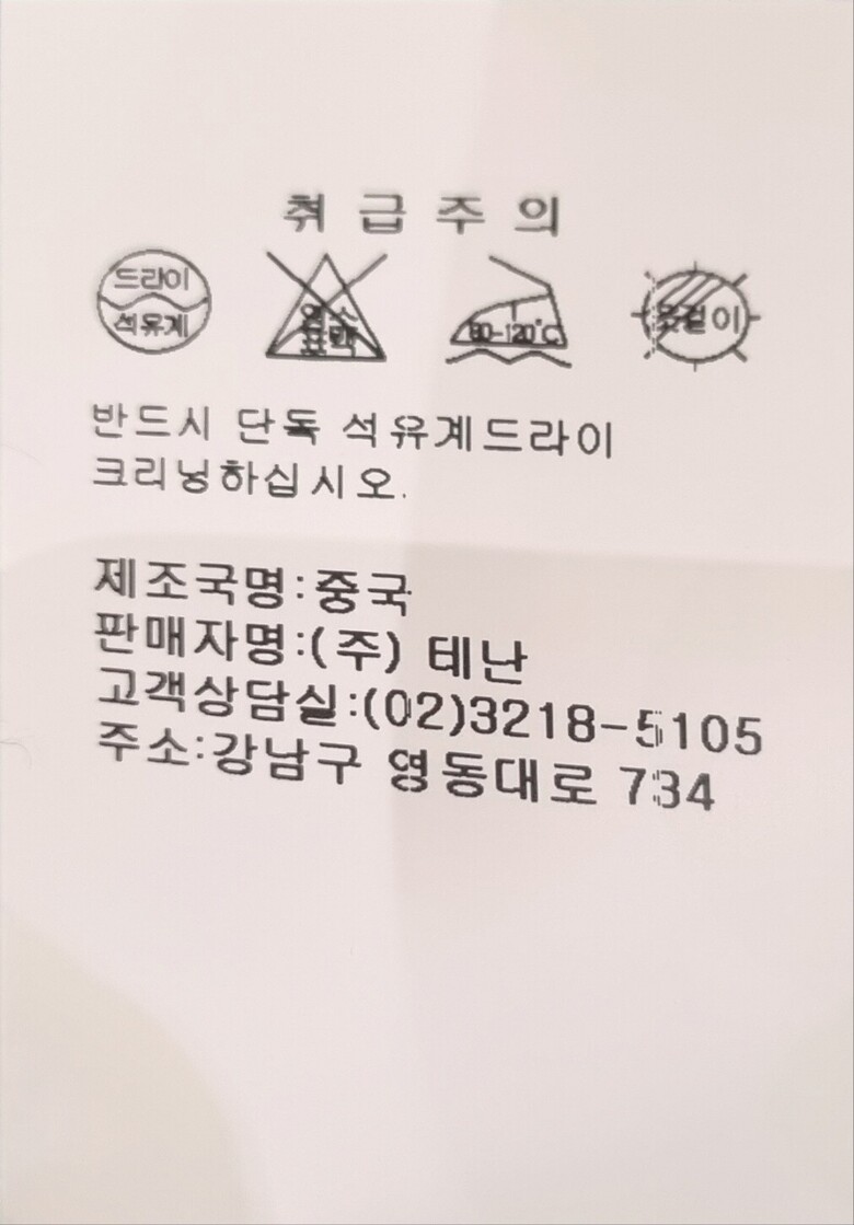 | 6. 세탁방법 및 취급시 주의사항 | 반드시 단독 석유계드라이 크리닝하십시오. |