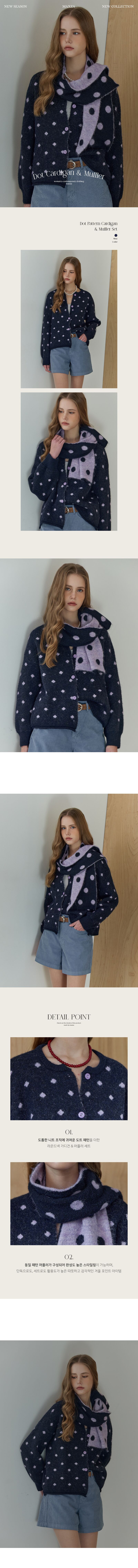 라운드넥 니트 가디건 & 머플러 세트입니다.