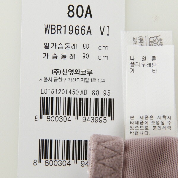 | 6. 세탁방법 및 취급시 주의사항 | 1.속옷은 중성세제를 이용하여 단독 손세탁하시기를 권합니다.2.세탁시 세제를 세탁물에 직접뿌리는 것은 금물입니다.3.브라의 컵부분은 주무르거나 비틀지않고, 가볍게비비거나 흔들고, 어깨끈과 날개 부분은 주물러 주세요 4.자수나 프릴, 레이스등이 달린 제품들은 뒤집어서 세탁해 주세요.5.충분히 헹구신 후 그늘에서 옷걸이를 상용 하여 건조합니다.6.브라컵은 형태를 정돈 후에 건조시켜 주세요.7.보관시에는 컵을 꺽어 접으면 컵모양이 변형되어 가슴을 예쁘게 모아주지 않습니다.8.품질 경영 촉진법에 의한 품질 표시를 꼭 참조하시어 세탁하십시오. |