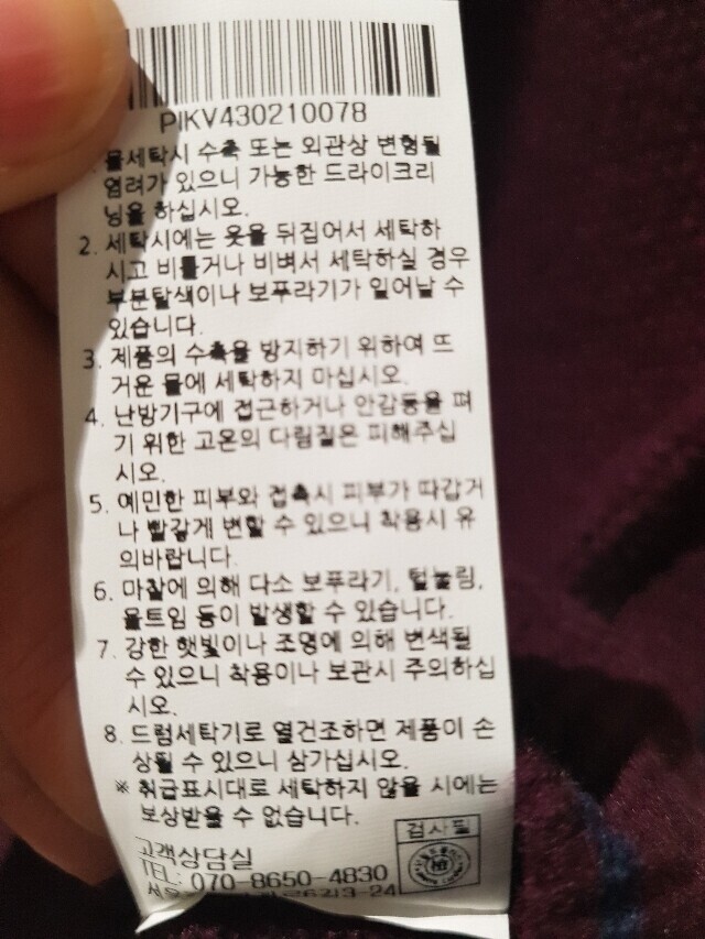 | 6. 세탁방법 및 취급시 주의사항 | 상품상세참조 |