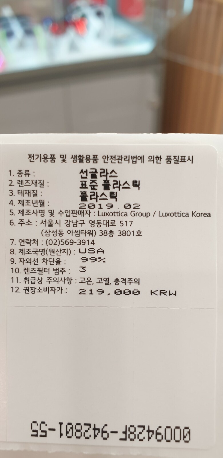 고온에 의한 렌즈 및 프레임이 변형될 위험이 있으니 차량 내(직사광선)에 방치하지 마십시오