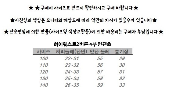 무료배송 여아 하이웨스트 2버튼 면스판 4부 팬츠