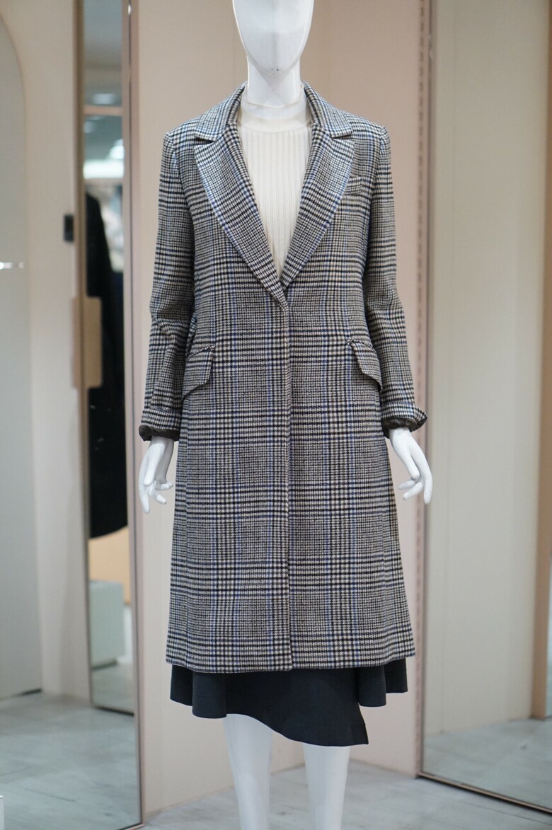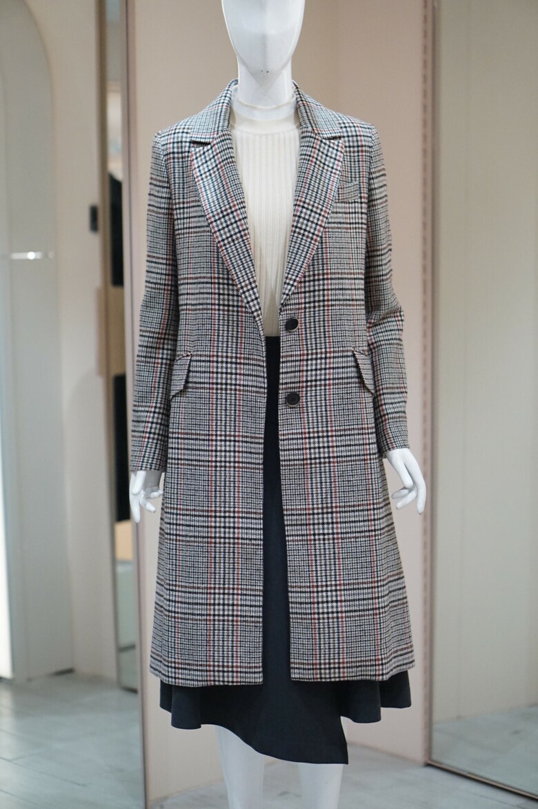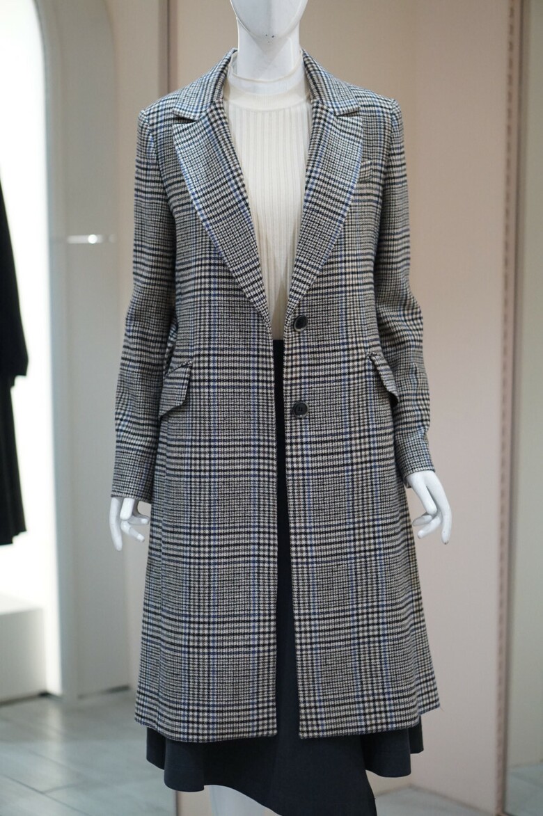 룩에 포인트를 주기 좋은 체크 패턴의 코트형 자켓입니다.