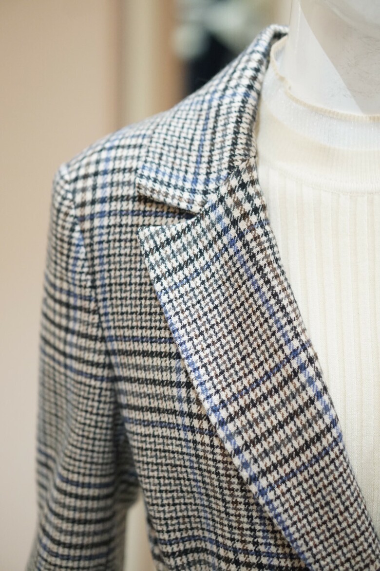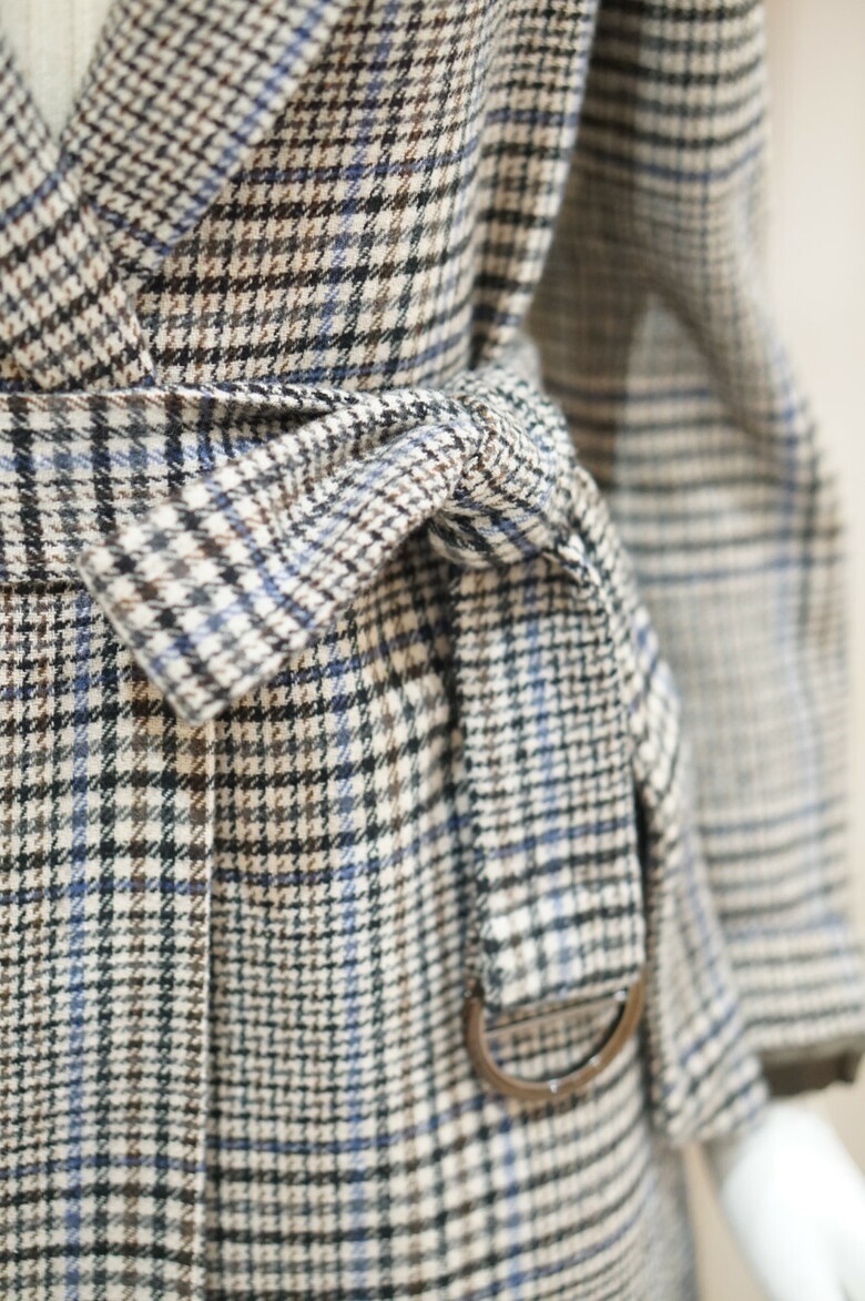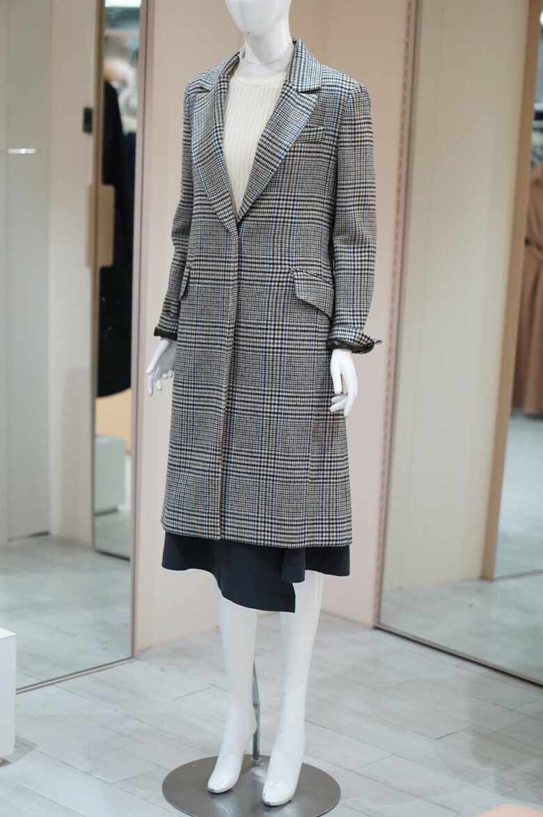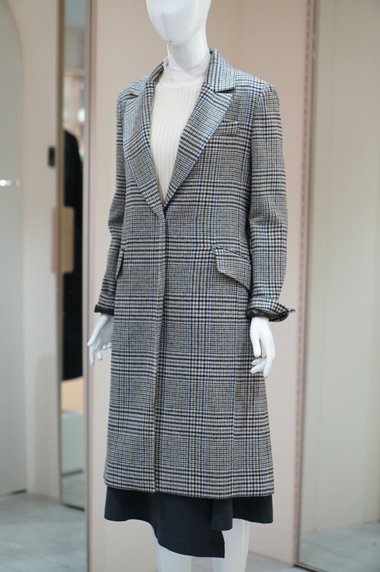 룩에 포인트를 주기 좋은 체크 패턴의 코트형 자켓입니다.