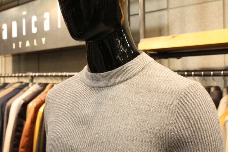 신축성이 아주좋은 골지조직에 부드러운촉감으로 착용감이 좋은 슬림크루넥니트입니다