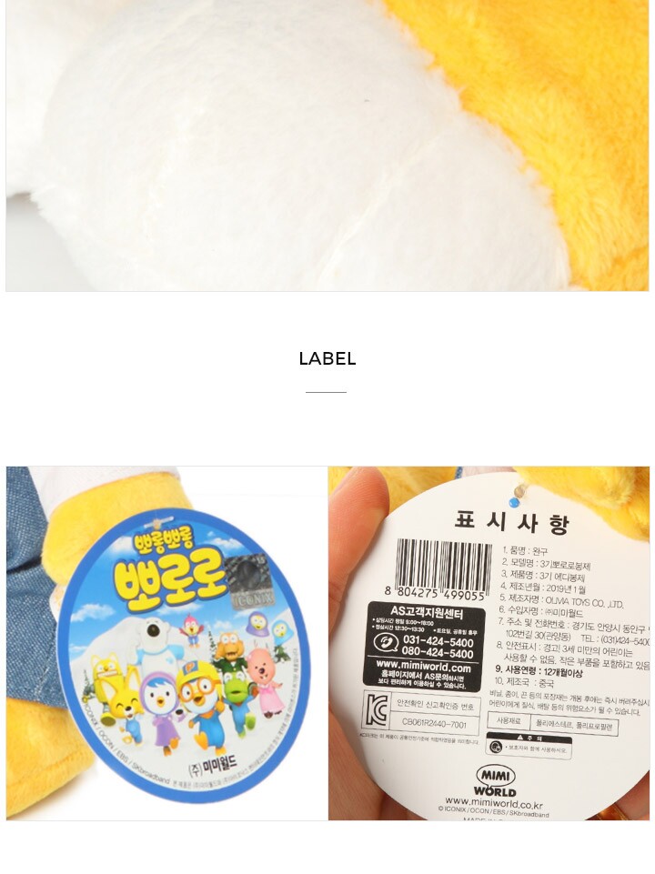 1. 품명 및 모델명 | 뽀로로 에디봉제3기 8804275499055 |
