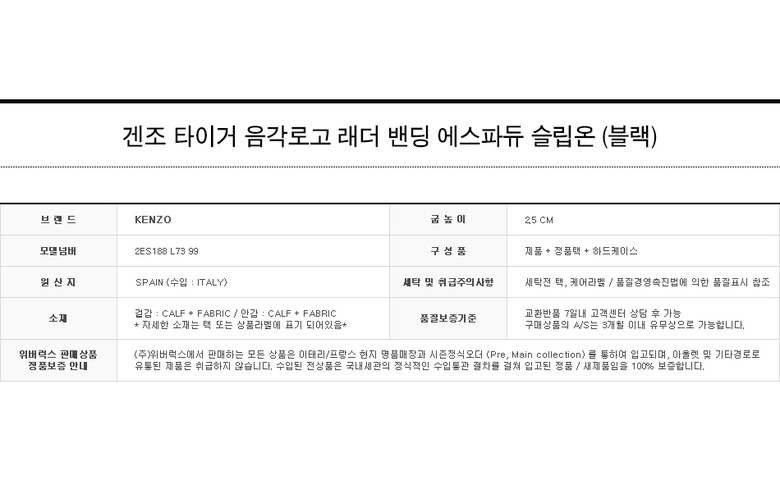 [명품] 겐조 타이거 음각로고 래더 밴딩 에스파듀 슬립온/2ES188 L73 99