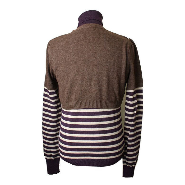 퍼플 스트라이프에 브라운 볼레로를 덧입은 듯한