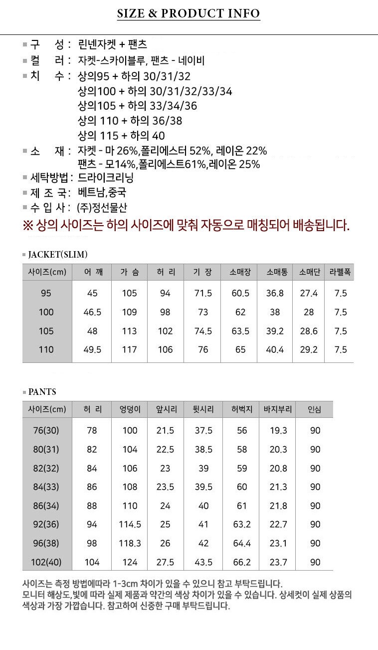 | 2. 색상 | 자켓-스카이블루,팬츠-네이비 |