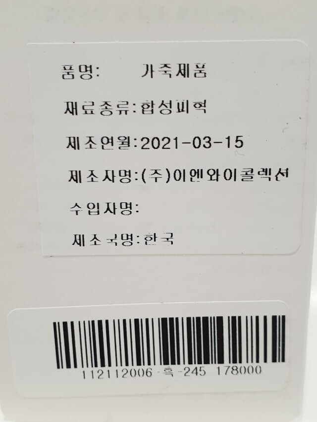 1. 제품 소재 (운동화인 경우에는 겉감, 안감을 구분하여 표시) | 합성피혁 |