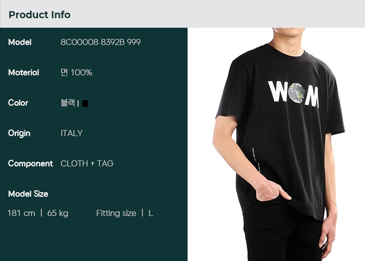 [명품] 8C00008 8392B 999 남성 월드 오브 로고 반팔 티셔츠