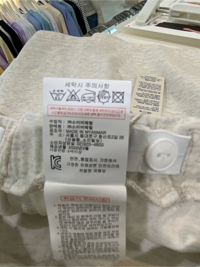 | 1. 제품 소재 (섬유의 조성 또는 혼용률을 백분율로 표시, 기능성인 경우 성적서 또는 허가서) | 폴리에스터50%,면45%,폴리우레탄5% |