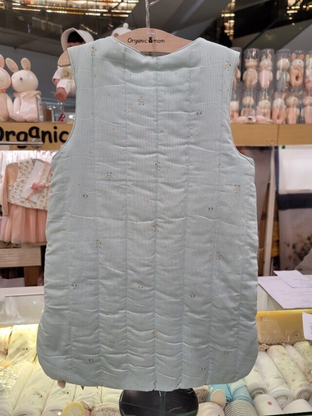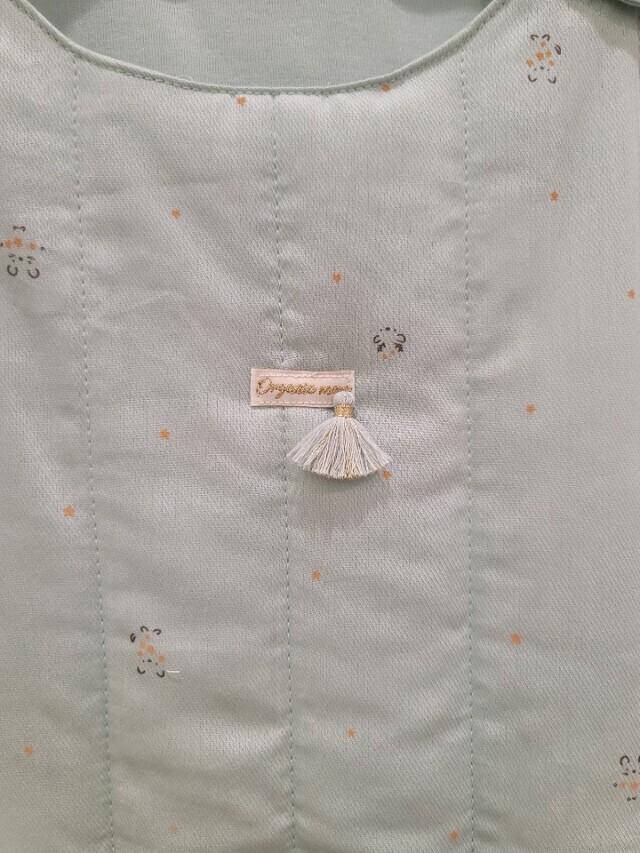잔잔한 동물들의 모양과 별들을 흩뿌려놓듯이 패턴화하여 블루와 어우러진 나염원단이 돋보이고 오가닉 우븐 원단으로 고급스러움을 주며 누비 처리로 푹신한 느낌을 줍니다.