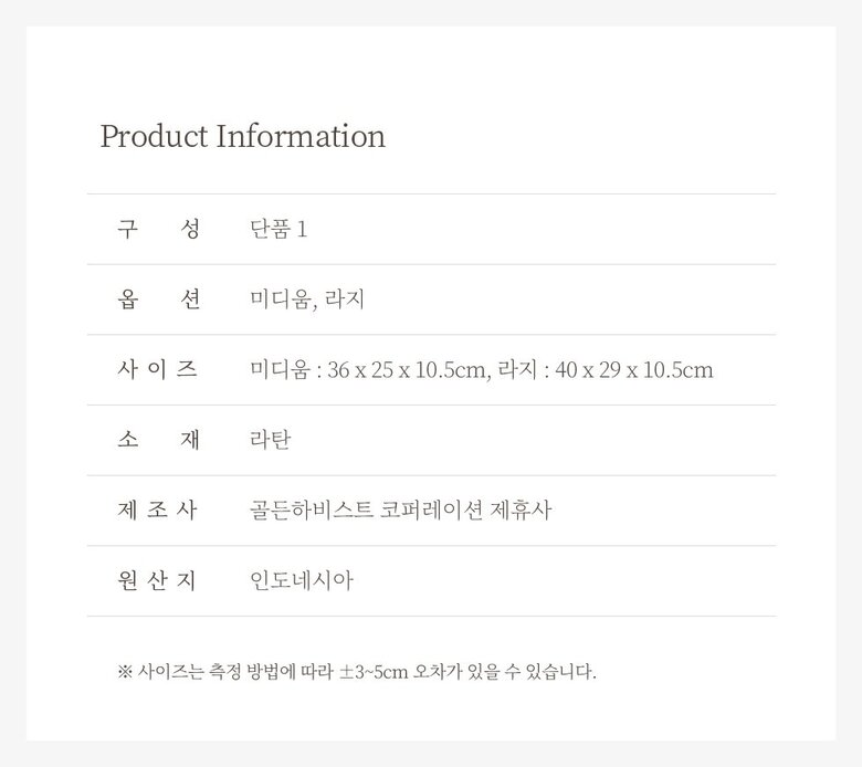 • 표시/광고와 상이, 제품 하자의 경우 수령 후 3개월 이내, 또는 그 사실을 안 날로부터 30일 이내 교환/반품 가능합니다.