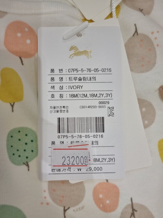 부드러운 면100%소재의 내복입니다