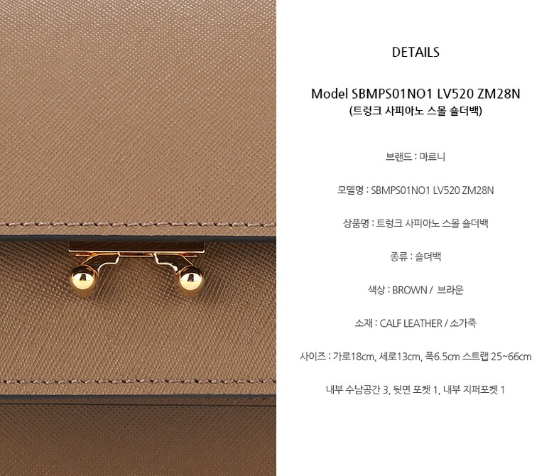 | 4. 크기 | Measurement : Length 18cm; Height 12.5cm; Width 6cm; Shoulder Strap Drop at max 44.5cm |