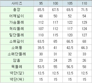| 3. 치수 | 95,100,105,110 |