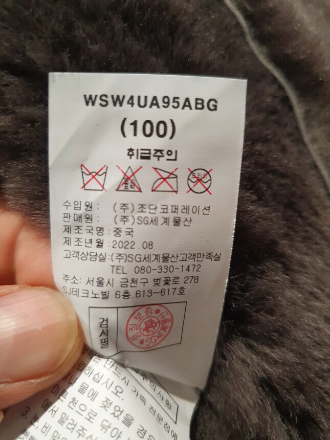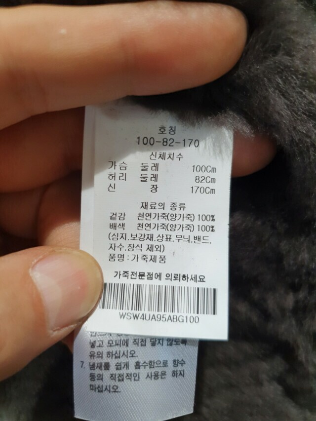 겉감 : 천연가죽(양가죽) 100%