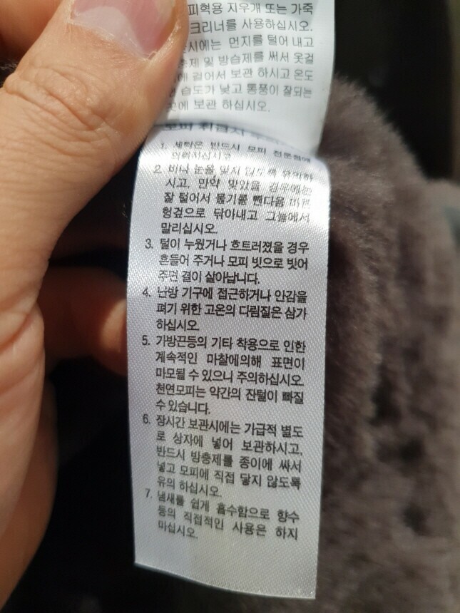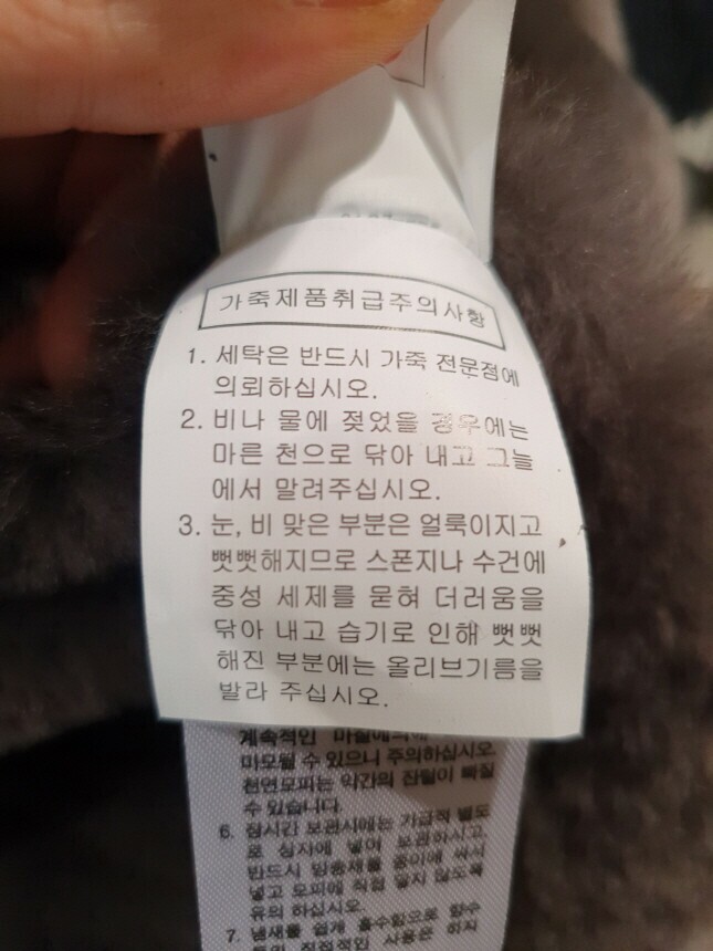 | 6. 세탁방법 및 취급시 주의사항 | 가죽 드라이크리닝 |