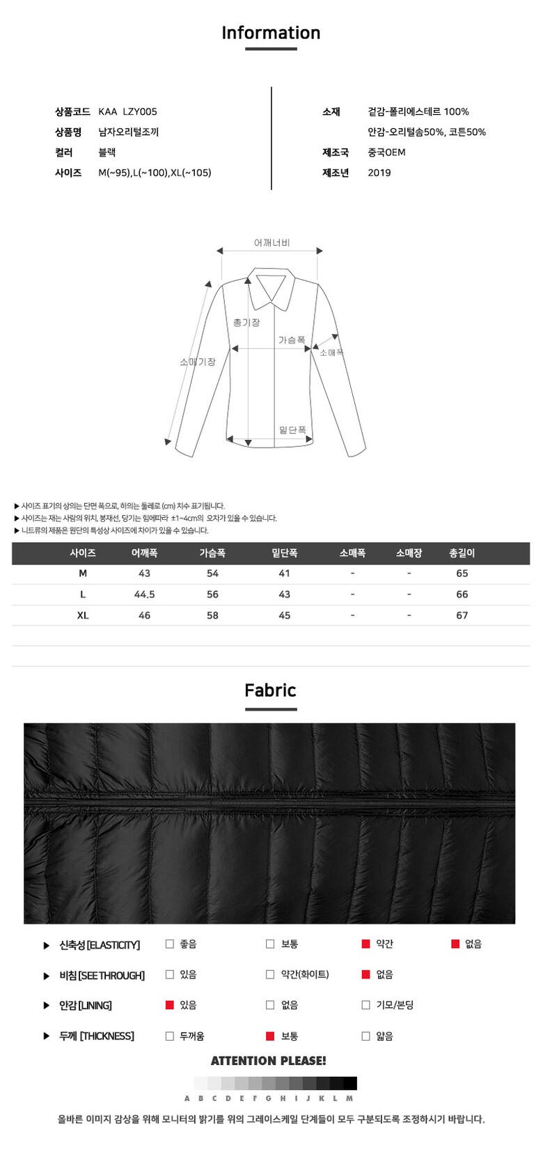블레오[BLEO] 남자 캐주얼 오리털 조끼