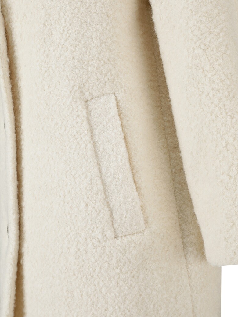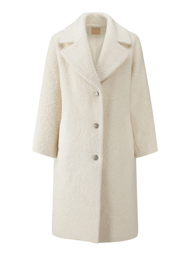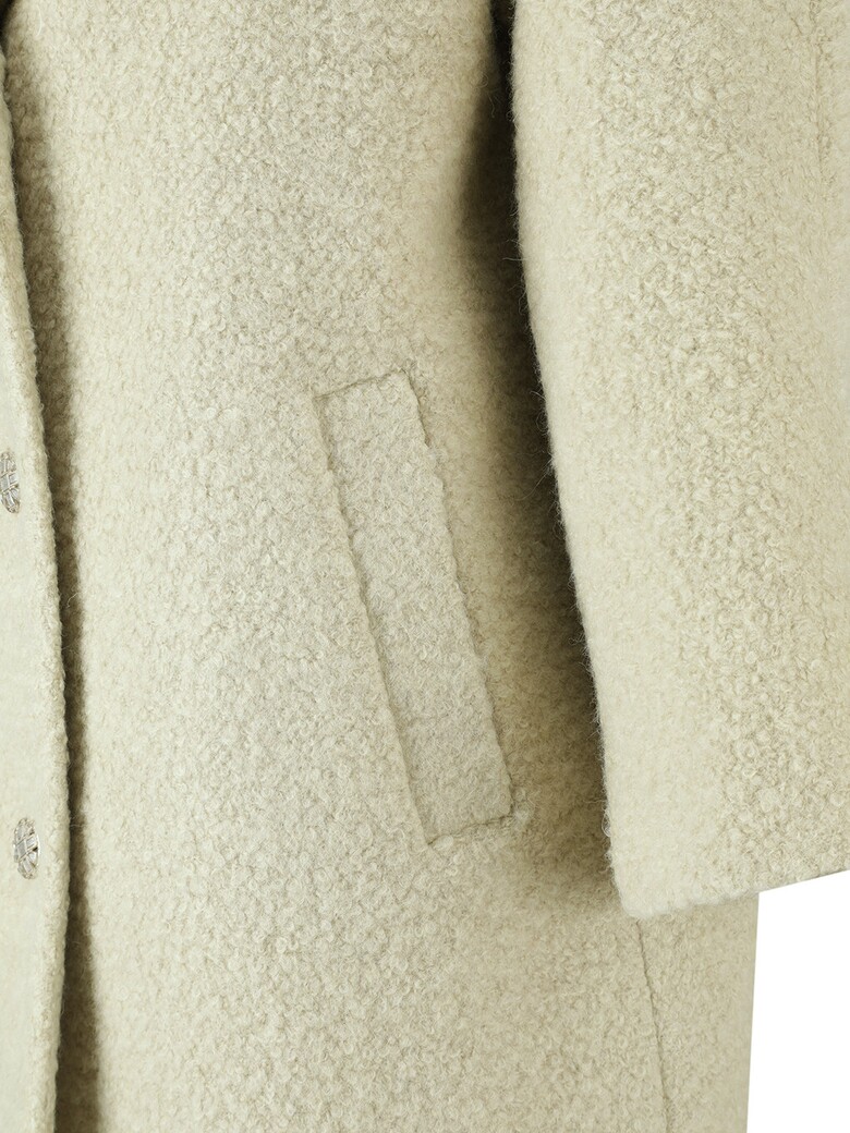 - 알파카 소재를 믹스한 부클 텍스쳐가 부드러운 오버핏 롱 코트입니다.