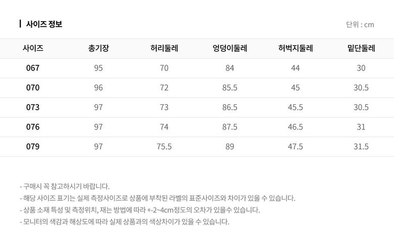 | 3. 치수 | 사이즈:067/070/073/076/079 |
