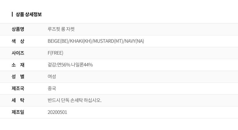 | 2. 색상 | BEIGE(BE)/KHAKI(KH)/MUSTARD(MT)/NAVY(NA) |