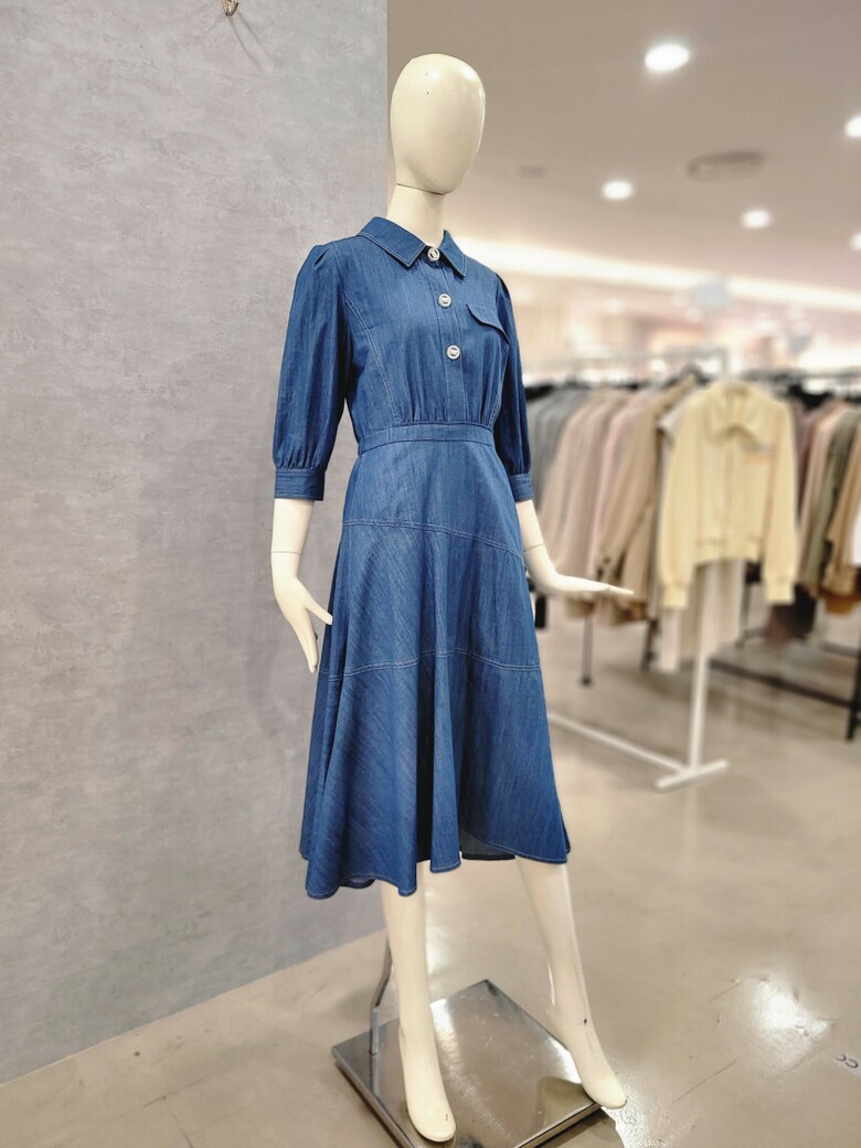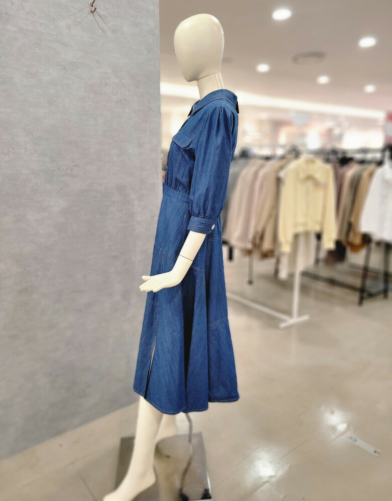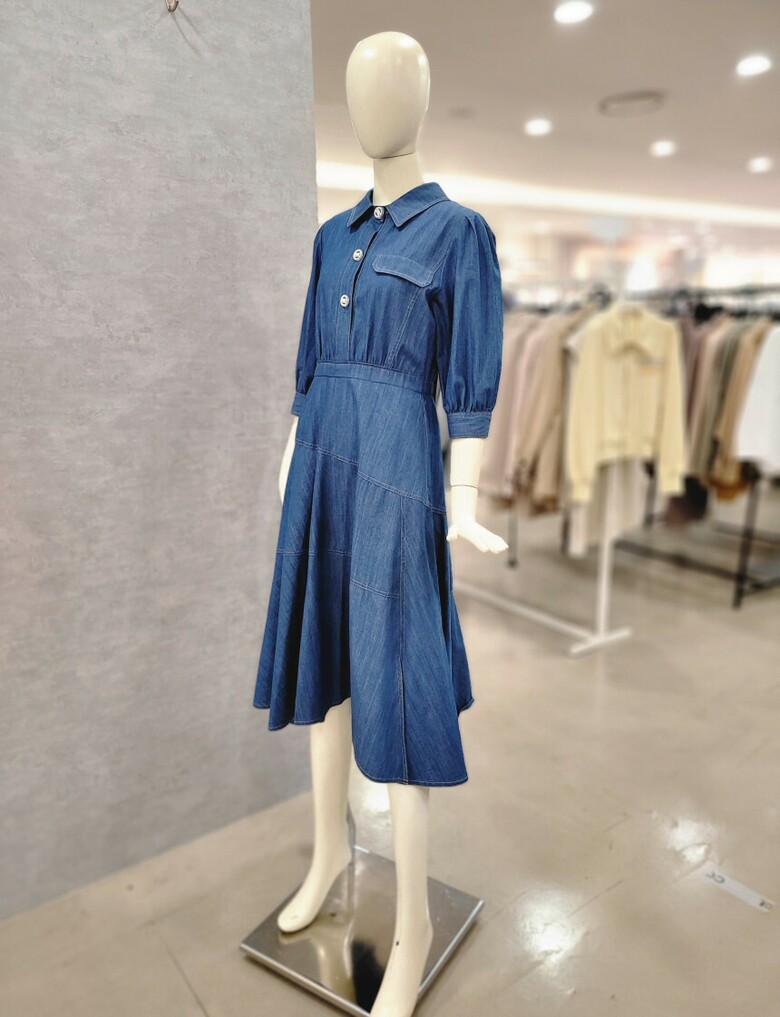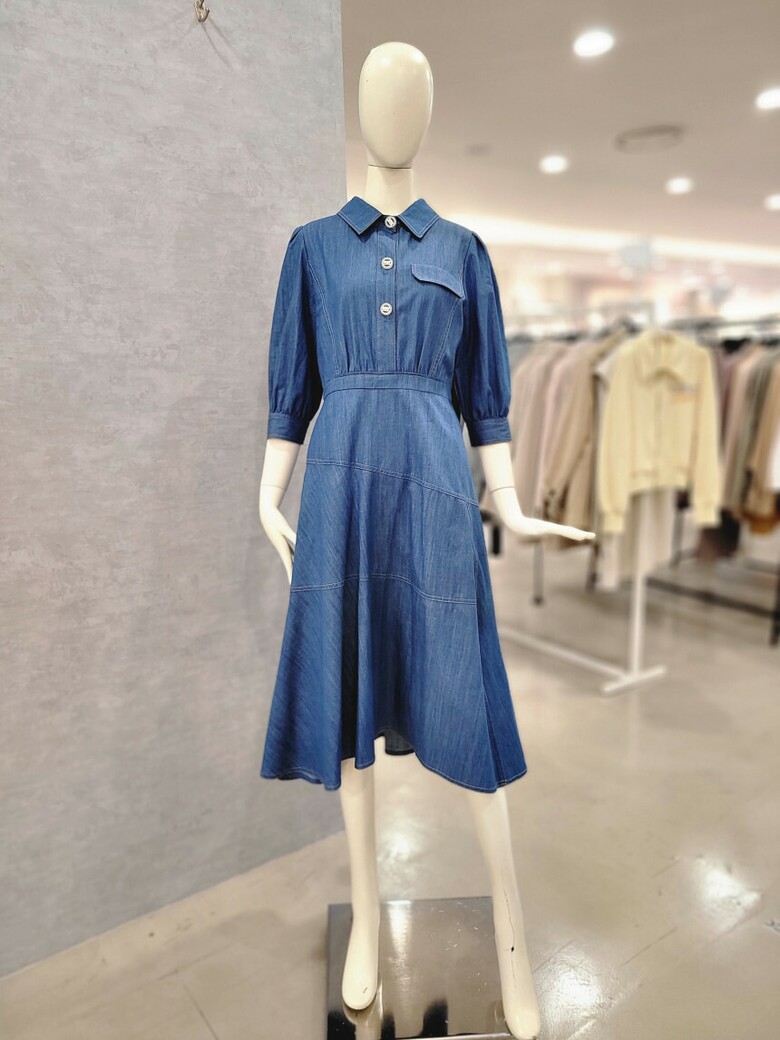 씨씨콜렉트 카라넥 퍼프소매 데님 원피스 E232PSE151