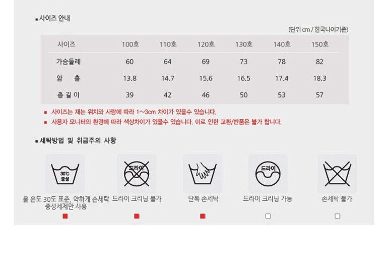 • 처음 배송된 상품상태와 다를 경우(세탁/착용 후 외출하신 경우) 반품이 불가합니다.