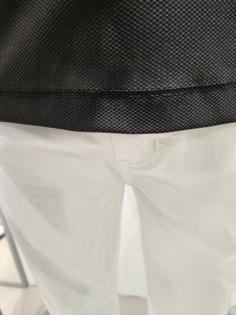 | 1. 제품 소재 (섬유의 조성 또는 혼용률을 백분율로 표시, 기능성인 경우 성적서 또는 허가서) | 겉감:폴리에스테르 83%, 폴리우레탄 17% / 배색:마 100% |