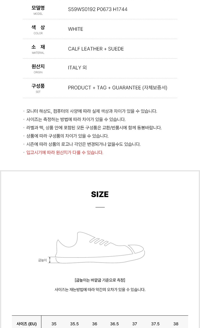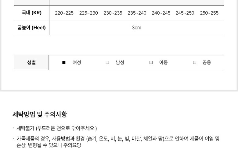 3. 치수 | EU34(210-215),EU34.5(215-220),EU35(220-225),EU35.5(225-230),EU36(230-235),EU36.5(235-240),EU37(240-245),EU37.5(245-250),EU38(250-255),EU38.5(255-260),EU39(260-265),EU39.5(265-270),EU40(270-275) |