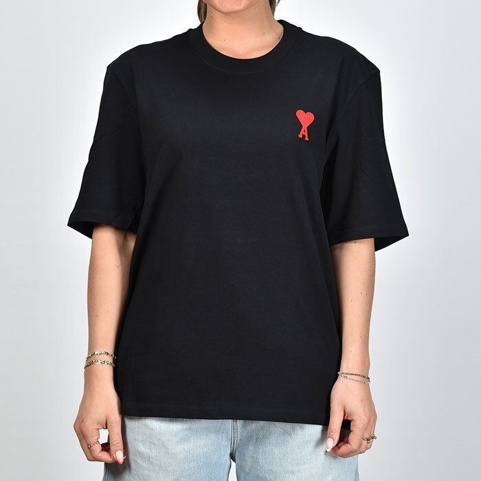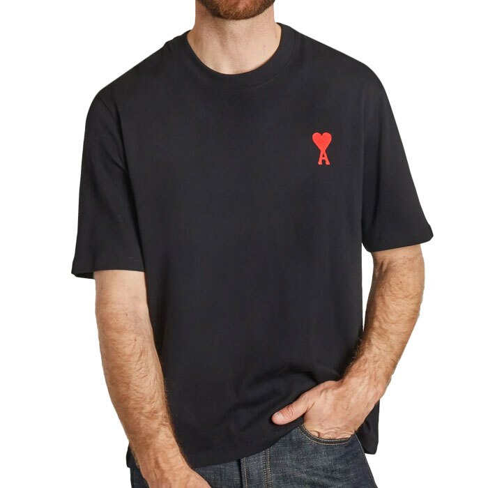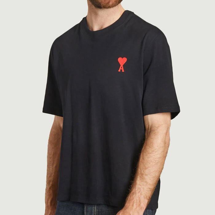 23SS 아미 남성 하트 자수 로고 반팔 블랙 UTS004 726 009
