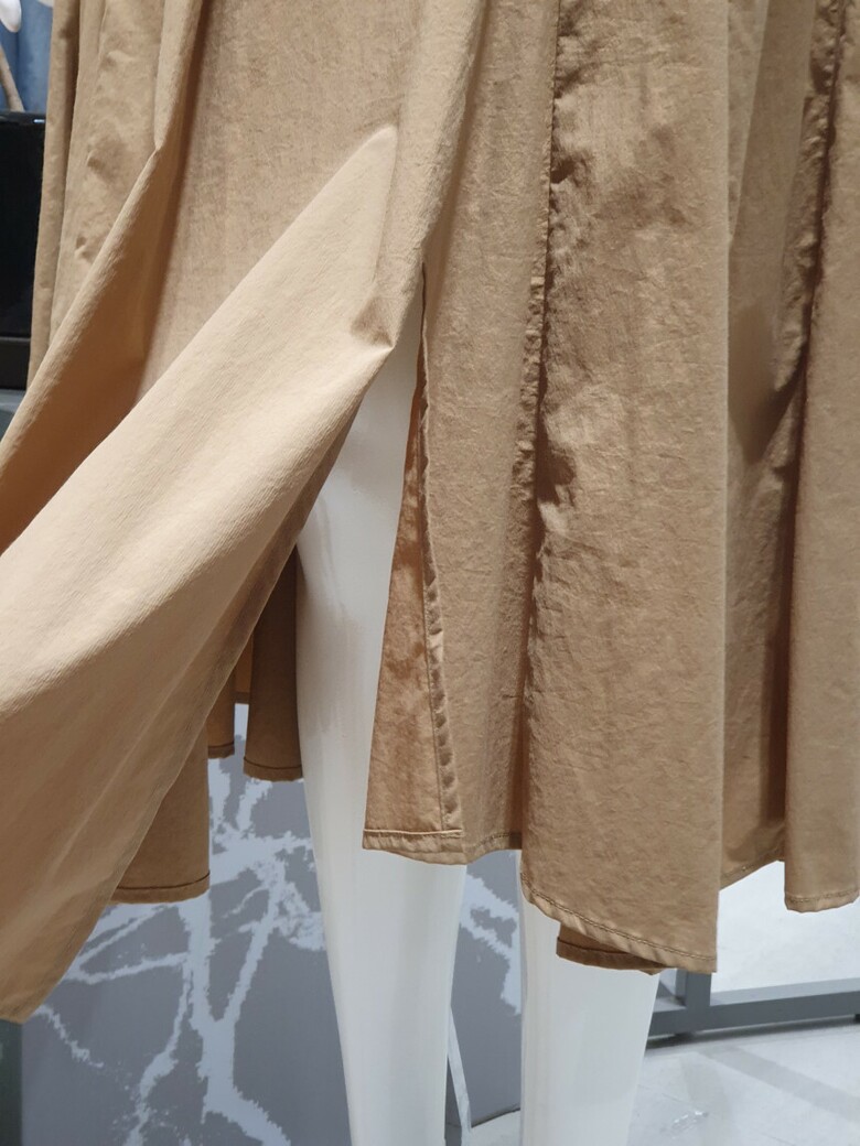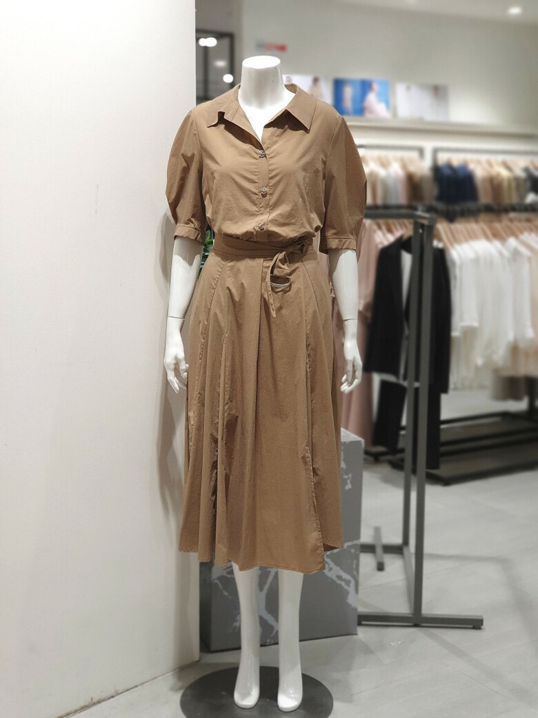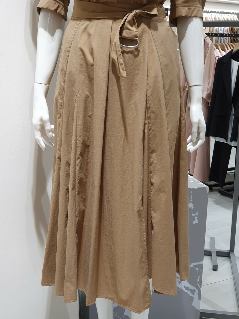 A 라인의 플리츠 디자인으로 페미닌한 실루엣이 연출되며