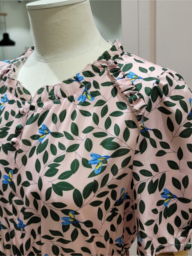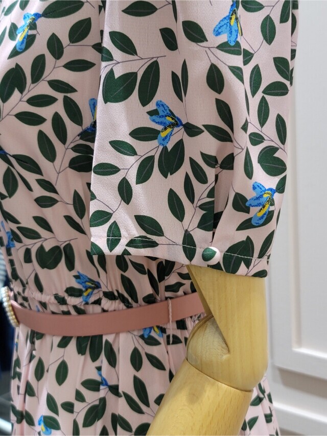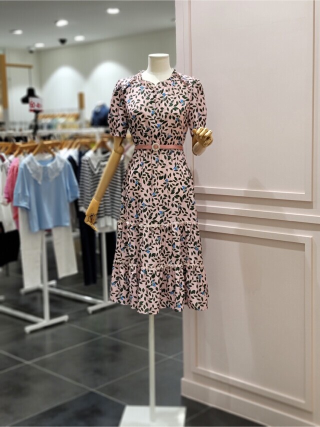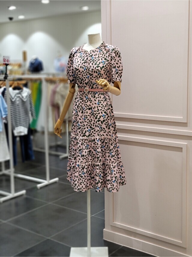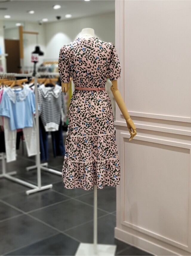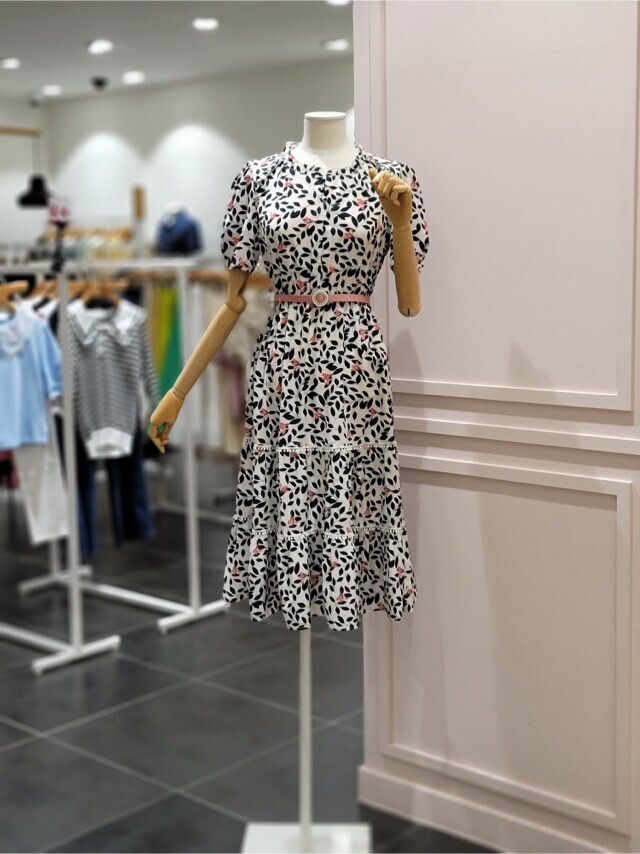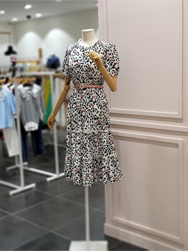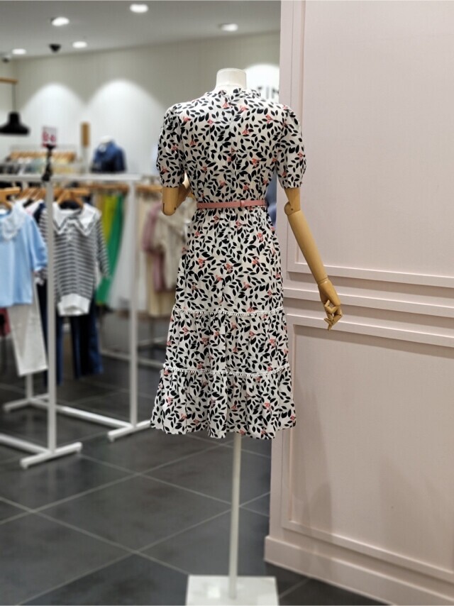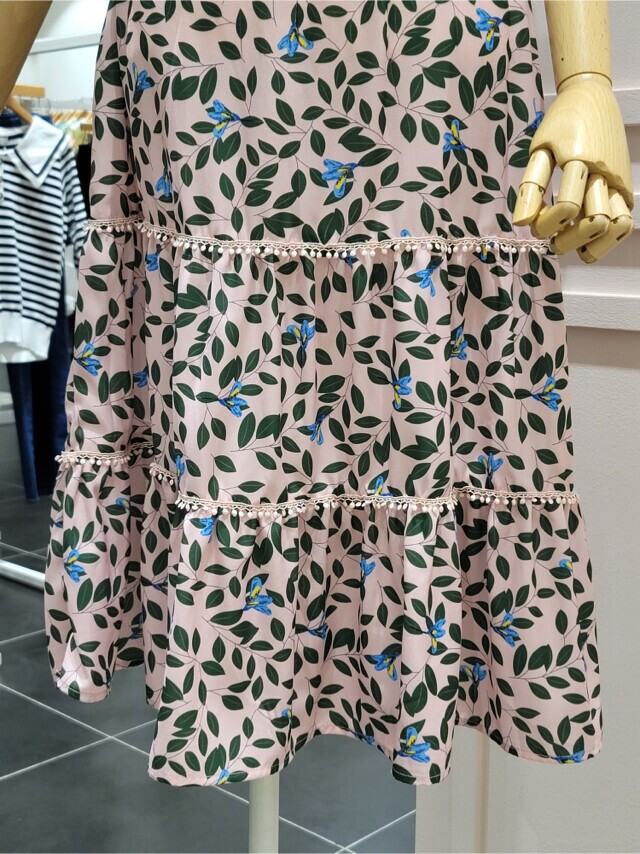 샤틴 나뭇잎 티어드 반팔 원피스 S232k651