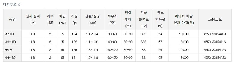 해당 상품은 [ 타치우오 X HH-180 ] 모델의 상품입니다.