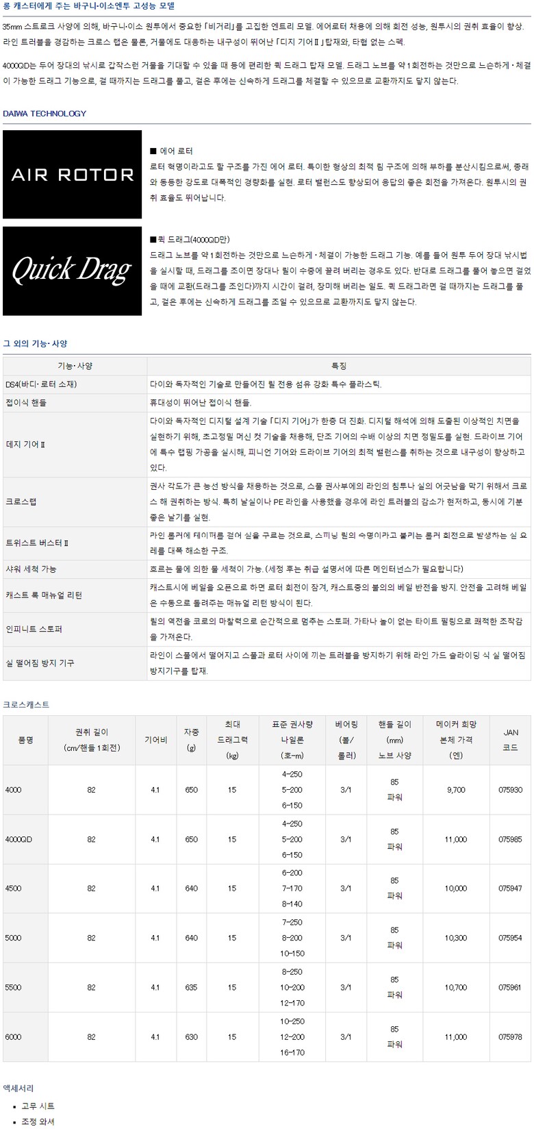 다이와 17 크로스캐스트 4000QD 스피닝릴 한국다이와 정공
