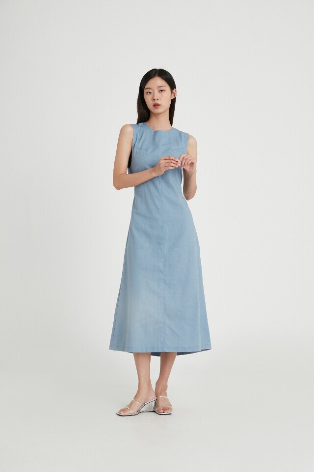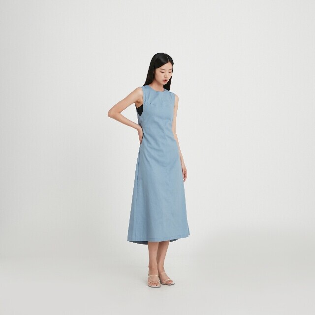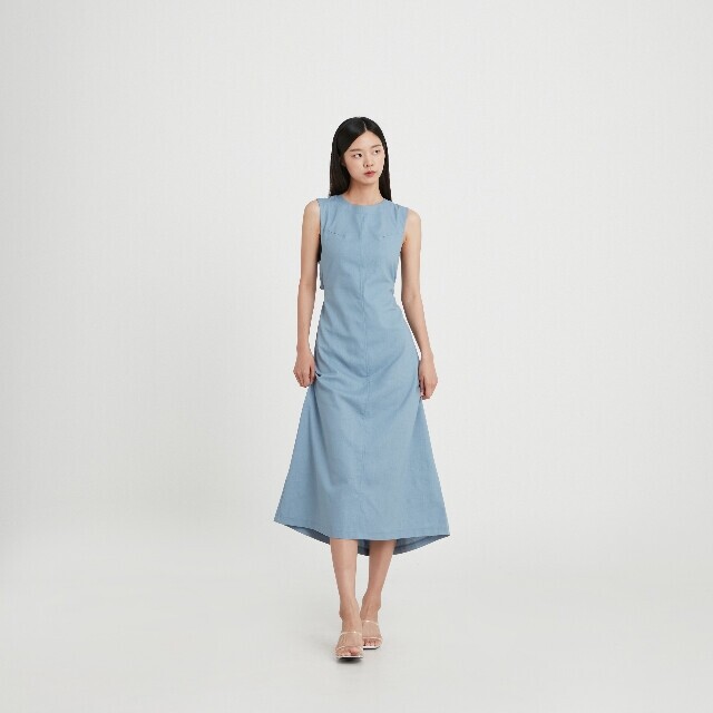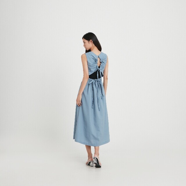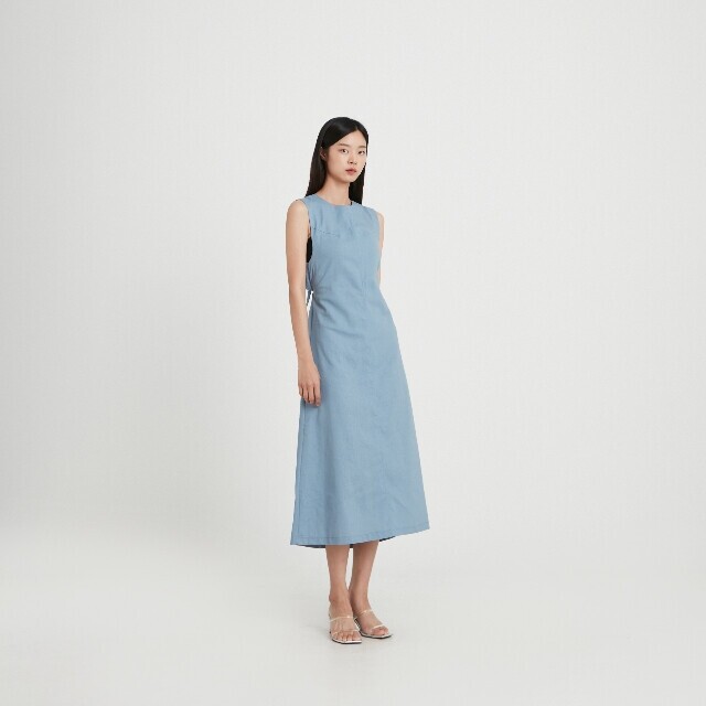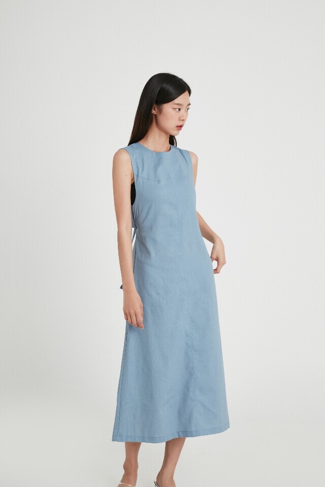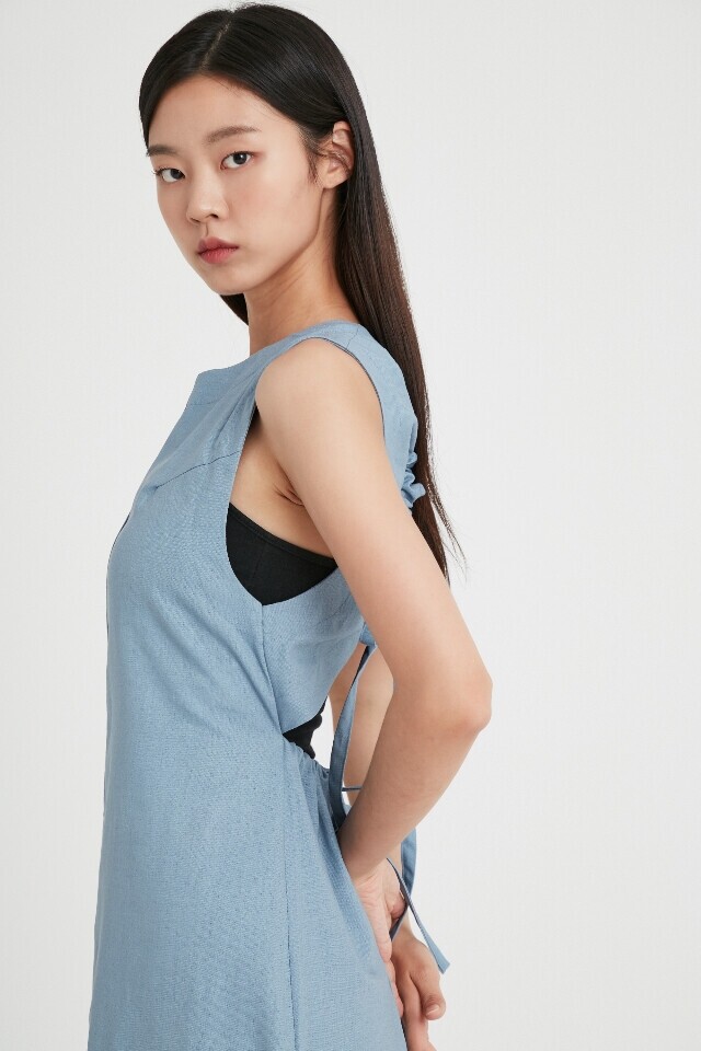 AN2WO544 린넨 혼방 백 리본 디테일 민소매 원피스