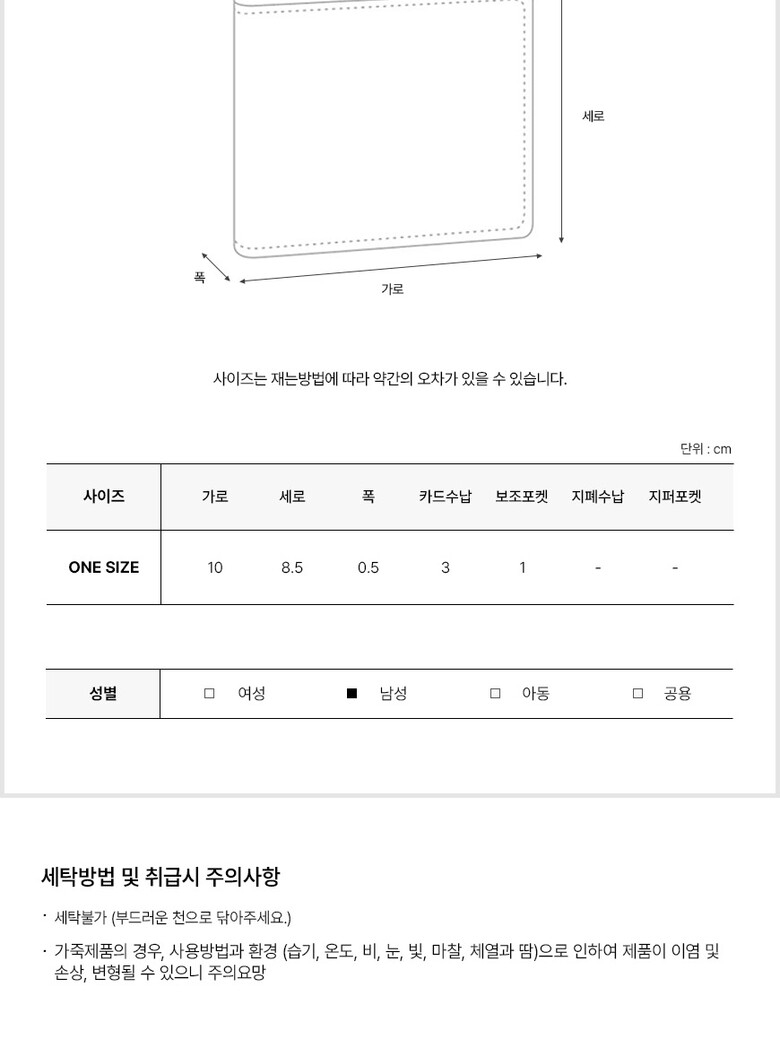 3. 치수 | 가로 10cm X 세로 8.5cm X 폭 0.5cm |