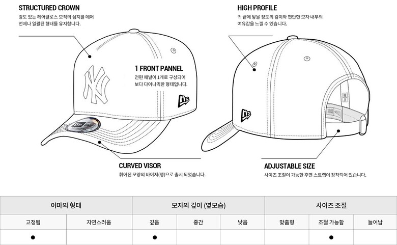 9FORTY K-FRAME 이란, 기존의 9FORTY에서 변형된 실루엣으로, 전면 2개의 패널을 한 개의 패널로 구성하여 보다 다이나믹하고 안정적인 형태를 자랑하는 모델입니다. 크라운의 깊이가 깊기 때문에 이마 전체를 덮어주어 좀 더 강인한 인상을 주며 얼굴형이 긴 사람에게 더 잘 어울리는 실루엣입니다.
