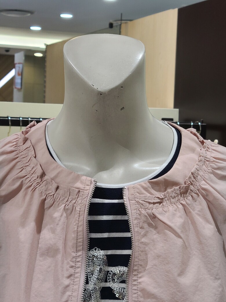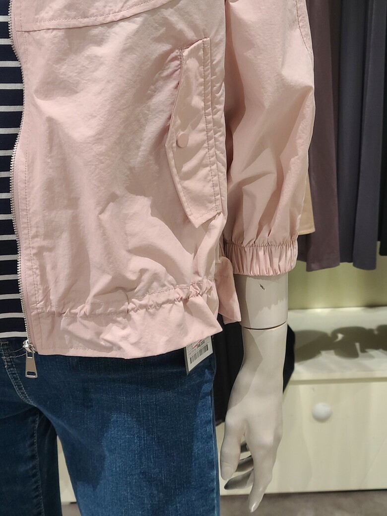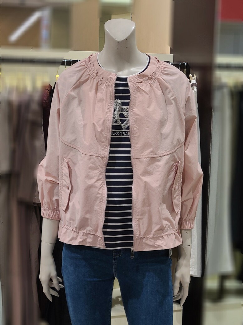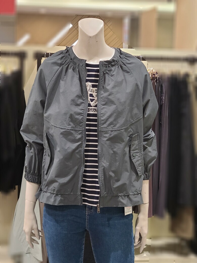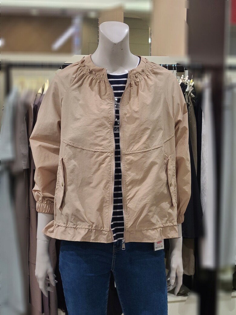 부담 없이 입기 좋은 넥 라인 라운드 셔링 바람막이 점퍼입니다