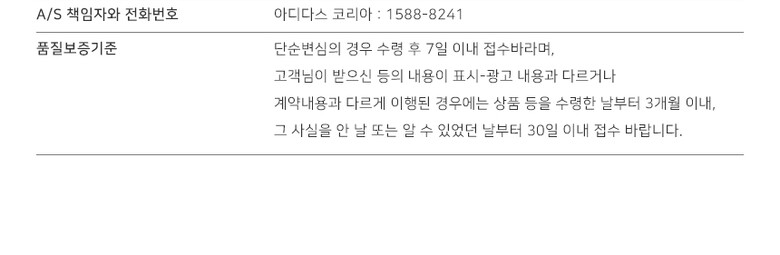 9. A/S 책임자와 전화번호 | 아디다스코리아/1588-8241 |