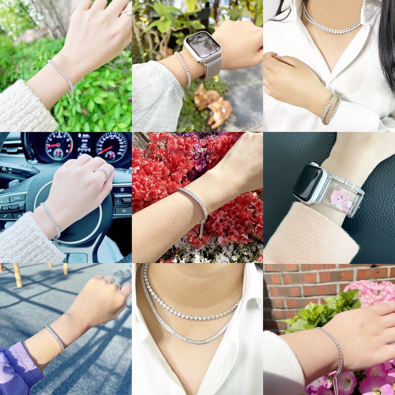- 베스트 인기있는 페미닌한 테니스 큐빅 은팔찌 고급스러운 화려한 럭셔리한 실버팔찌 925실버 순은