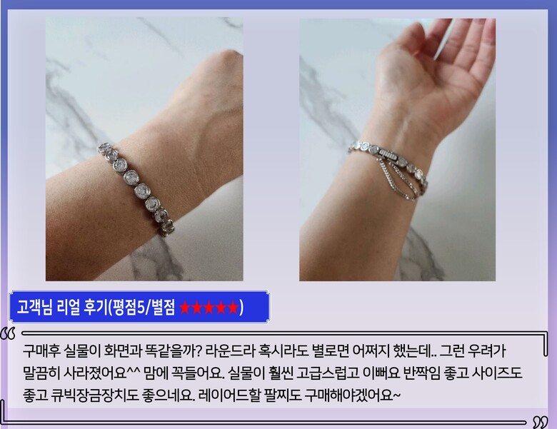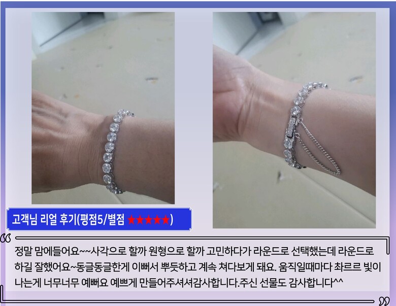 -물기는 최대한 멀리해주시고 물기가 묻으면 바로 닦아주시면 새상품처럼 오래도록 착용이 가능합니다. |
