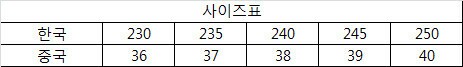 사이즈 : 230,235,240,245,250